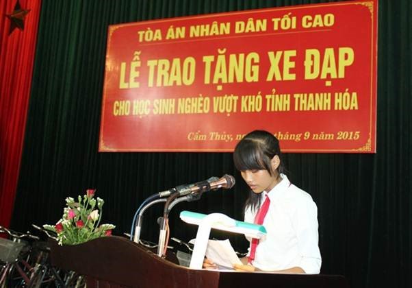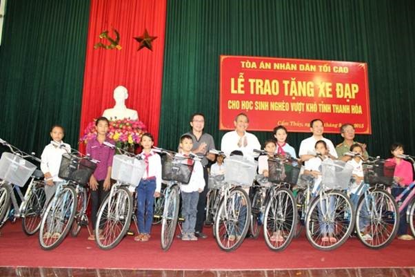 Đây là một hoạt động có ý nghĩa thiết thực, nằm trong Chương trình “Tiếp sức cho học sinh nghèo vượt khó đến trường” của ngành Tòa án. Cùng tham gia đoàn công tác trao quà cho học sinh nghèo còn có ông Nguyễn Lân, Phó Tổng biên tập Báo CAND; ông Trịnh Văn Chiến – Bí thư Tỉnh ủy, Chủ tịch HĐND tỉnh Thanh Hoá; ông Đỗ Minh Tuấn; ông Lâm Tấn Lợi – Giám đốc Công ty Võng xếp Duy Lợi (đại diện nhà tài trợ), cùng đại diện lãnh đạo một số cơ quan, địa phương liên quan.