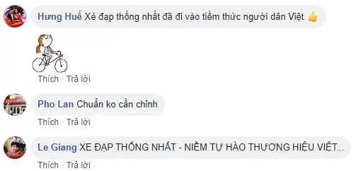 Bài viết đã thu hút hàng chục ngàn lượt yêu thích và chia sẻ chỉ chưa đầy 3 tiếng từ khi đăng tải và “Chú ngựa sắt” trong hình không khó để nhận ra đó là sản phẩm của xe đạp Thống Nhất – thương hiệu vượt thời gian với 60 năm xây dựng và phát triển trải qua nhiều thăng trầm của lịch sử đất nước, đã đồng hành và phục vụ hàng triệu triệu khách hàng trên mọi miền Tổ quốc chính vì vậy không quá ngạc nhiên khi cộng đồng mạng đã nhanh chóng nhận ra và bình luận ngay về niềm vui, niềm tự hào với chất lượng của thương hiệu đã gắn liền với tuổi thơ của họ.