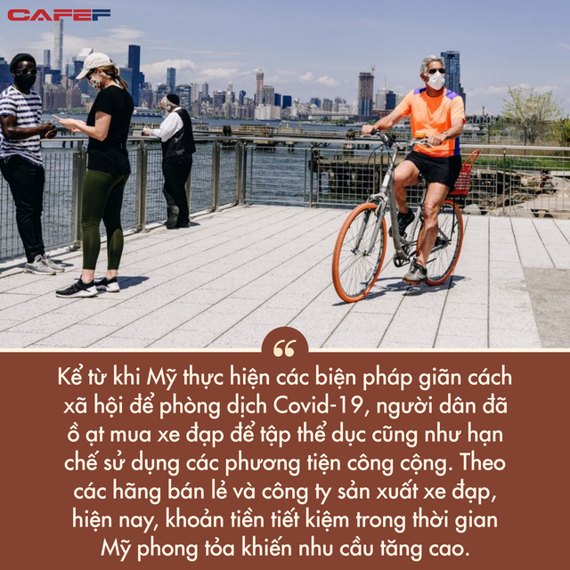 Kể từ khi Mỹ thực hiện các biện pháp giãn cách xã hội để phòng dịch Covid-19, người dân đã ồ ạt mua xe đạp để tập thể dục, một phần để hạn chế sử dụng các phương tiện công cộng. Theo các hãng bán lẻ và công ty sản xuất xe đạp, hiện nay, khoản tiền tiết kiệm trong thời gian Mỹ phong tỏa khiến nhu cầu tăng cao.