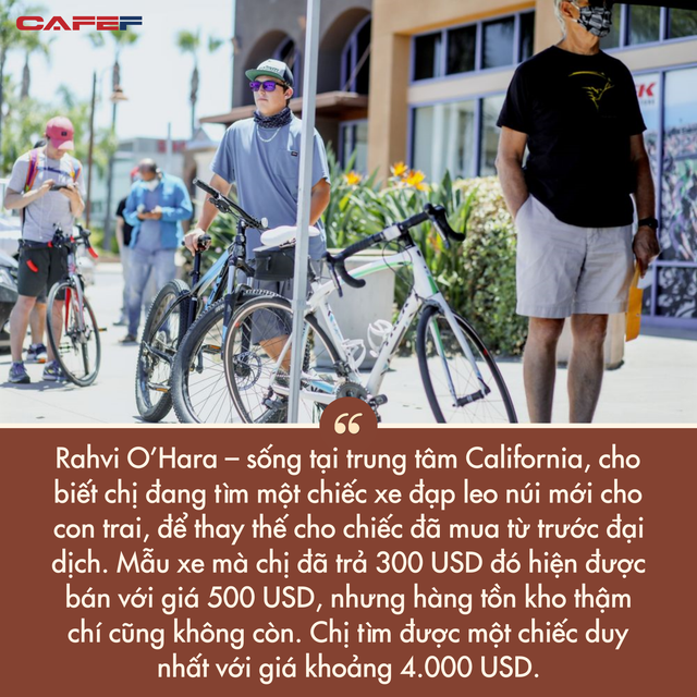 Điều này khiến nhiều người chán nản. Rahvi O’Hara – sống tại trung tâm California, cho biết chị đang tìm một chiếc xe đạp leo núi mới cho con trai, để thay thế cho chiếc đã mua từ trước đại dịch. Mẫu xe mà chị đã trả 300 USD đó hiện được bán với giá 500 USD, nhưng hàng tồn kho thậm chí cũng không còn. Chị tìm được một chiếc duy nhất với giá khoảng 4.000 USD.