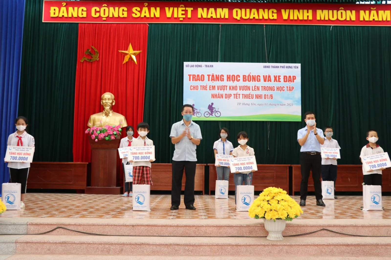 Tại buổi lễ, Sở Lao động Thương tinh và Xã hội tỉnh Hưng Yên đã trao 8 chiếc xe đạp, mỗi chiếc trị giá 2 triệu đồng và 7 suất học bổng, mỗi suất trị giá 700 nghìn đồng kèm theo quà tặng của các đơn vị hảo tâm được trao cho 15 em Học sinh có hoàn cảnh khó khăn trên địa bàn thành phố.