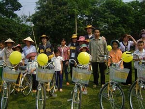 Trao tặng xe đạp tại xã Cuối Hạ (Kim Bôi).