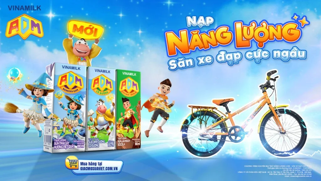 Nằm trong chuỗi chương trình tri ân khách hàng của Vinamilk, “Bật năng lượng ADM – Săn xe đạp cực ngầu” cũng lựa chọn mẫu xe cỡ bánh 20 inches làm quà tặng cho các siêu anh hùng nhí. Với thiết kế kiểu dáng xe đạp thể thao kết hợp với các màu sơn vàng, hồng, xanh dương, cam, mẫu xe ADM giúp các anh hùng nhí trở nên mạnh mẽ hơn.