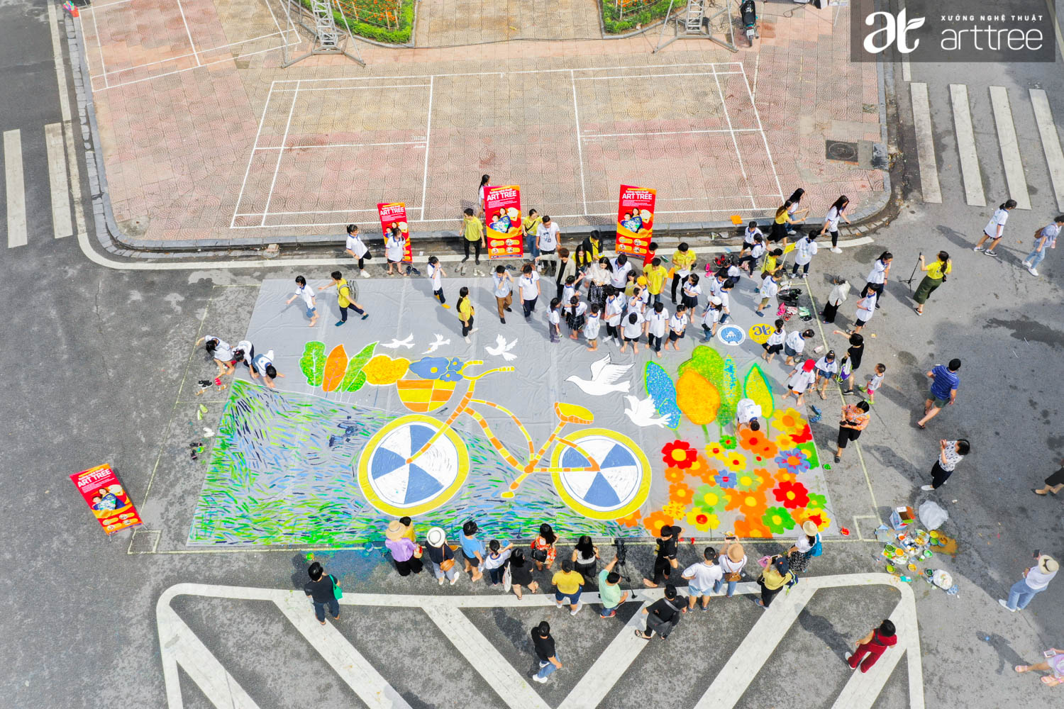 Đặc biệt, chương trình cũng trưng bày bức tranh xe đạp khổng lồ do chính tay các học viên nhí của Xưởng nghệ thuật Art Tree cùng Hoa hậu Ngọc Hân tỉ mỉ vẽ bằng màu acrylic trên vải toan.